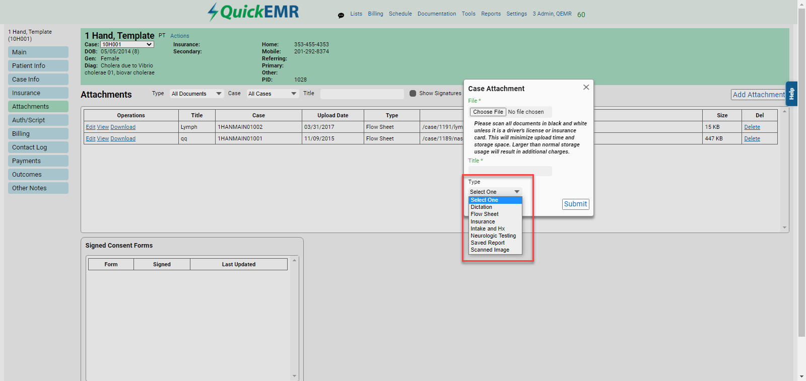 1. When adding an attachment in a patient's chart, users able to specify the document type