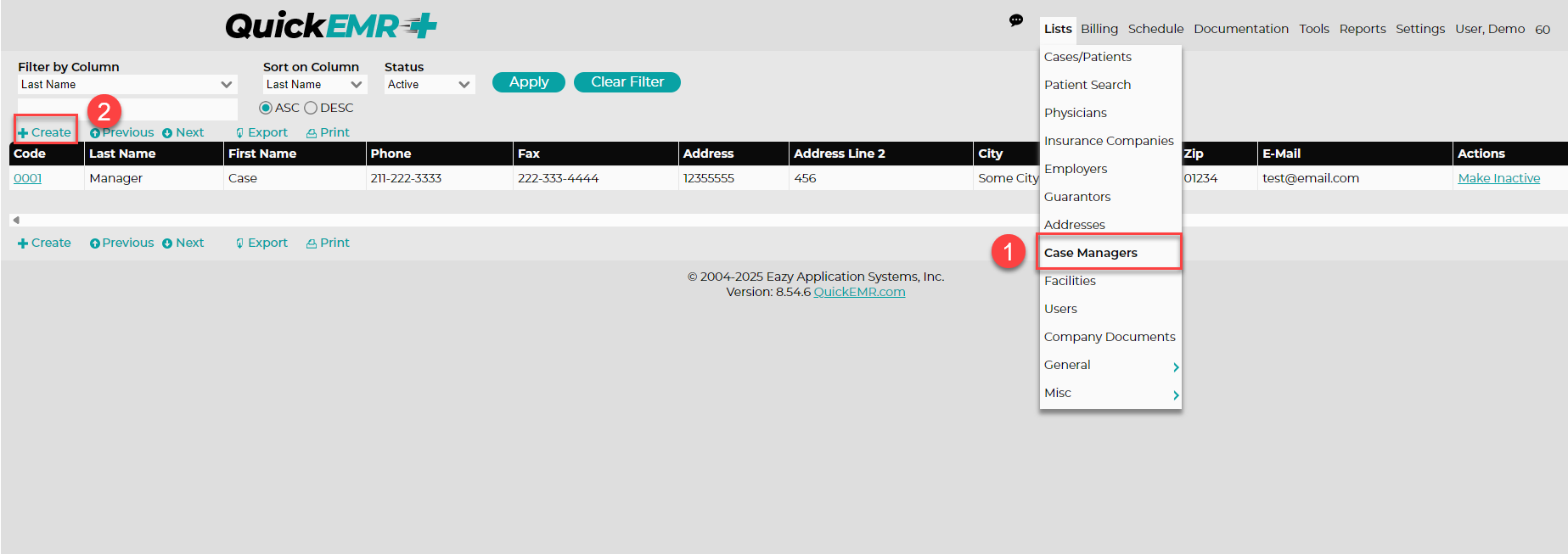2. Once under Case Manager, Click Create or Make Inactive to delete