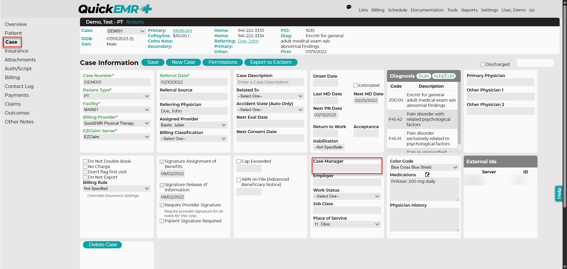 1. A Case Manager must be created in the system before adding to the patient's chart
