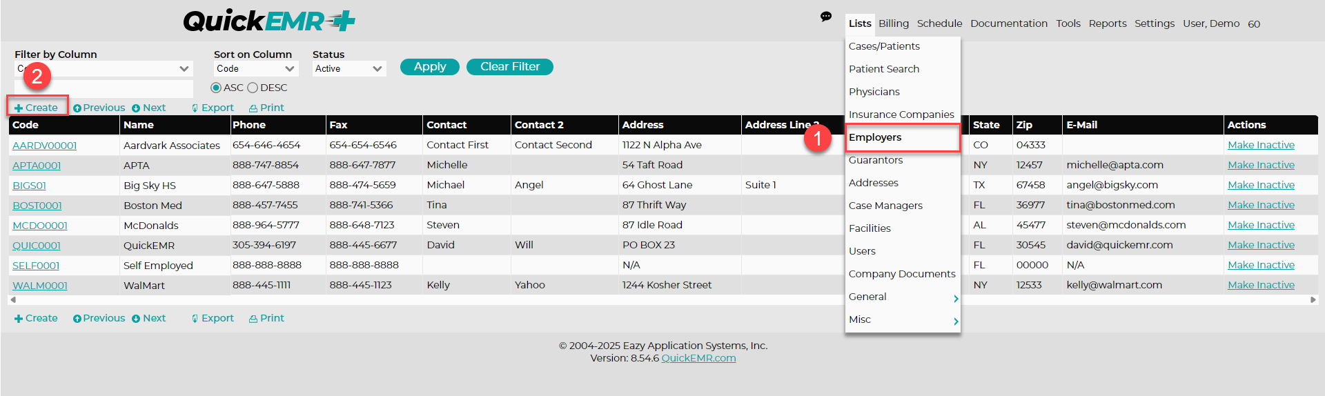 Patient's Chart: 1. A guarantor must be created in the system before adding to a patient's chart Where to go? 1. Users may manage their guarantors under List->Guarantors. 2. Once under Guarantors, click Create or Make Inactive to delete *use the ...
