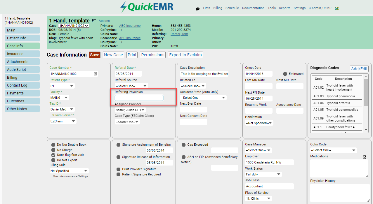 1. In order for the referring physician to populate, you will first need to add the physician into the system.