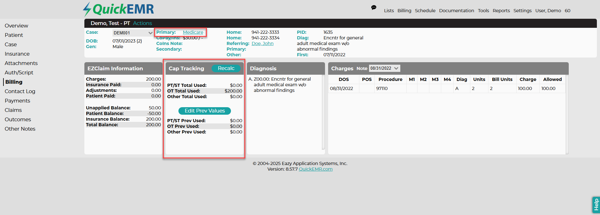 1. A Medicare Cap can be tracked for an individual patient under the billings tab within the patient's chart