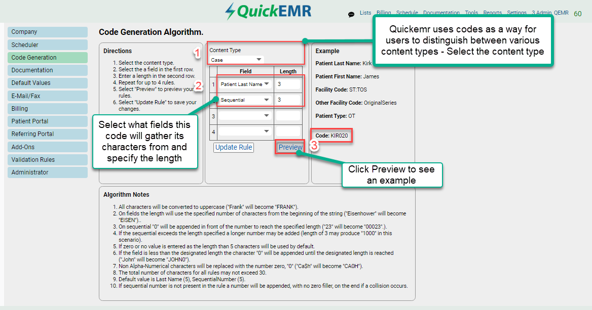 2. Select the establishment of what fields this code will be based on and specify the length of how many characters this code will generate from that field.