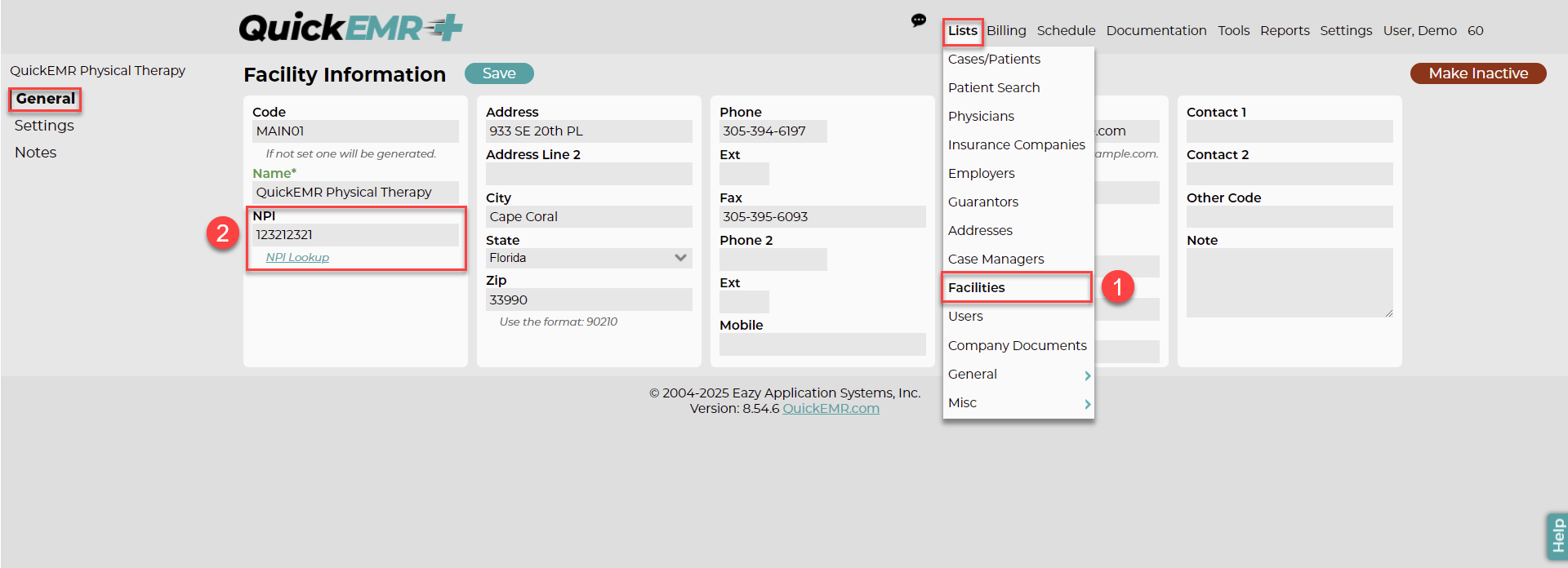 Most Insurance Companies require a Provider NPI. In the EDI world this usually means the NPI assigned to your organization for billing purposes. QuickEMR has added a new field to the Facility to capture this NPI and it must be filled out to check benefits. Visit Lists => Facilities => {Select a facility} => General {tab} => NPI (in the first field group). If the NPI is the same for all facilities, make sure to add that NPI to each facility anyway. Note: a benefits check will use the facility NPI of the facility assigned to the case record.