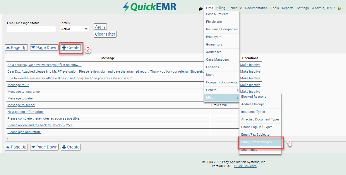 Creating New Templates: Where to go? 1. Users may manage their Email/Fax template under List->Misc>Email/Fax Message