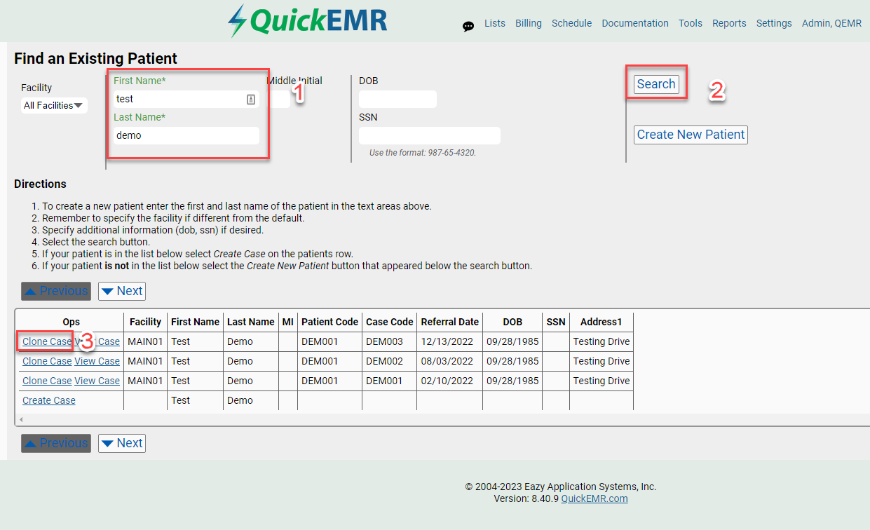 2. Search for the patient's case