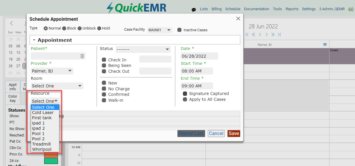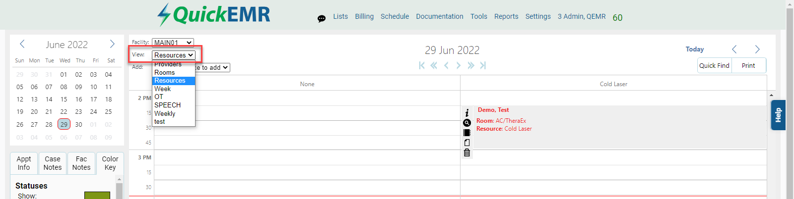 1. When a resource is attached to an appointment, users can adjust their view type to see all appointments that are using that resource