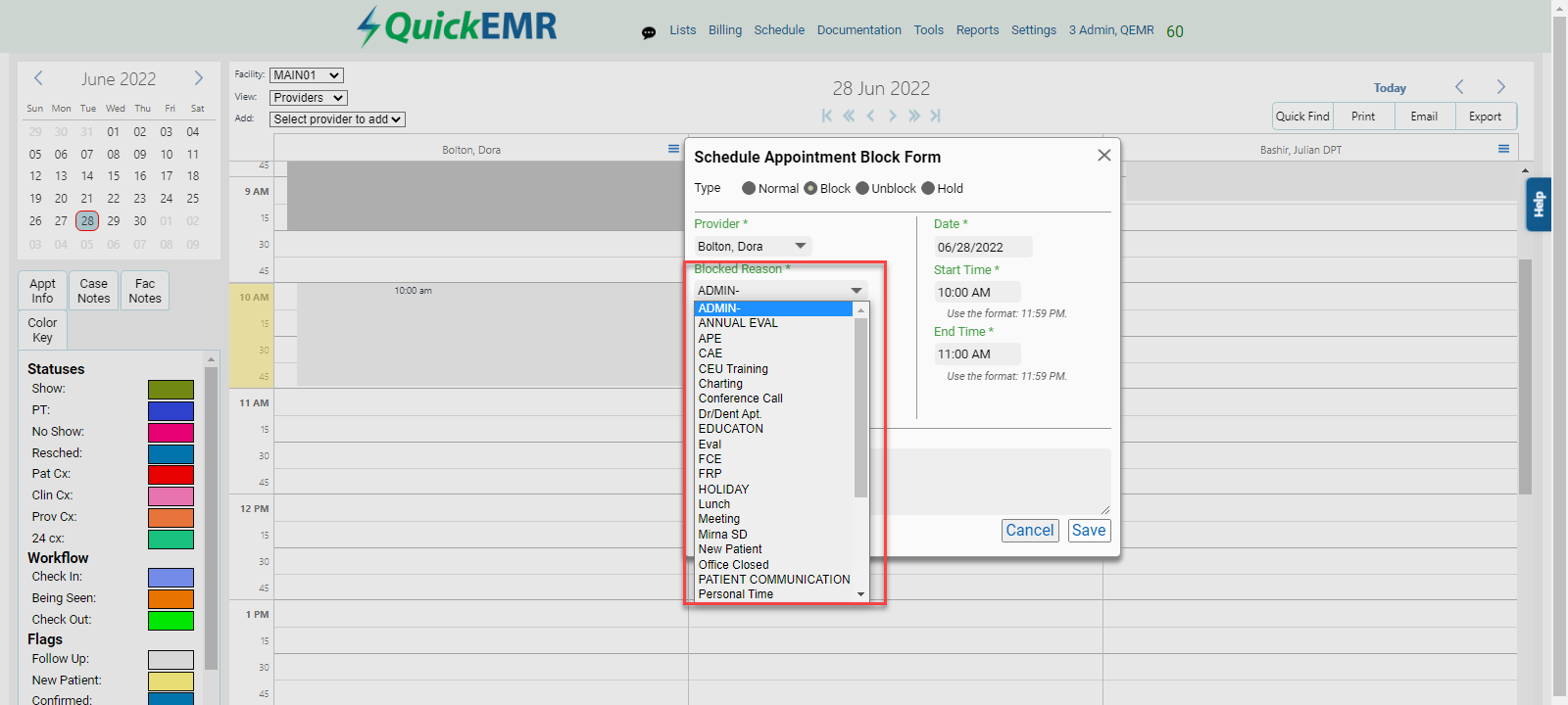 1. Users will be able to manage their blocked reasons under Schedule->Lists->Blocked Reasons