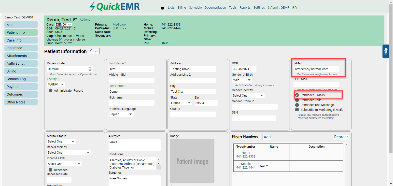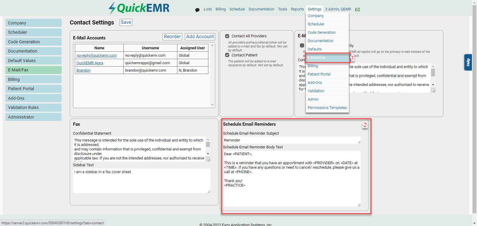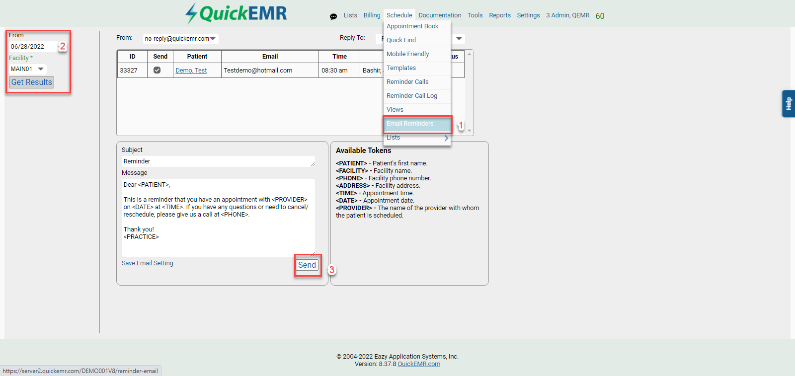 In order to send out email reminders you will need to integrate an email with QuickEMR.