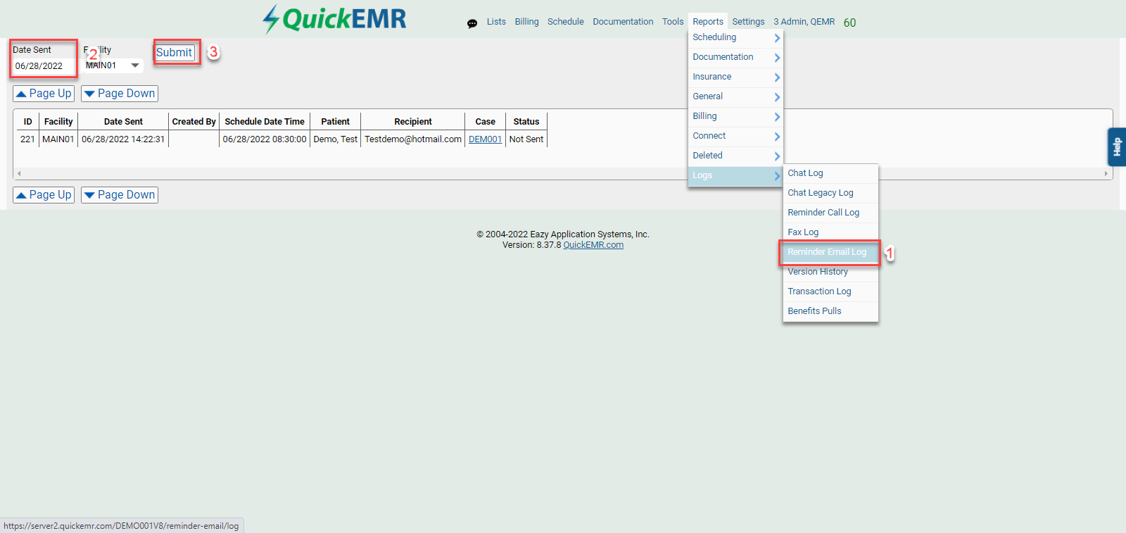 1. The reminder email log is used to track all email reminders that are sent out of QuickEMR
