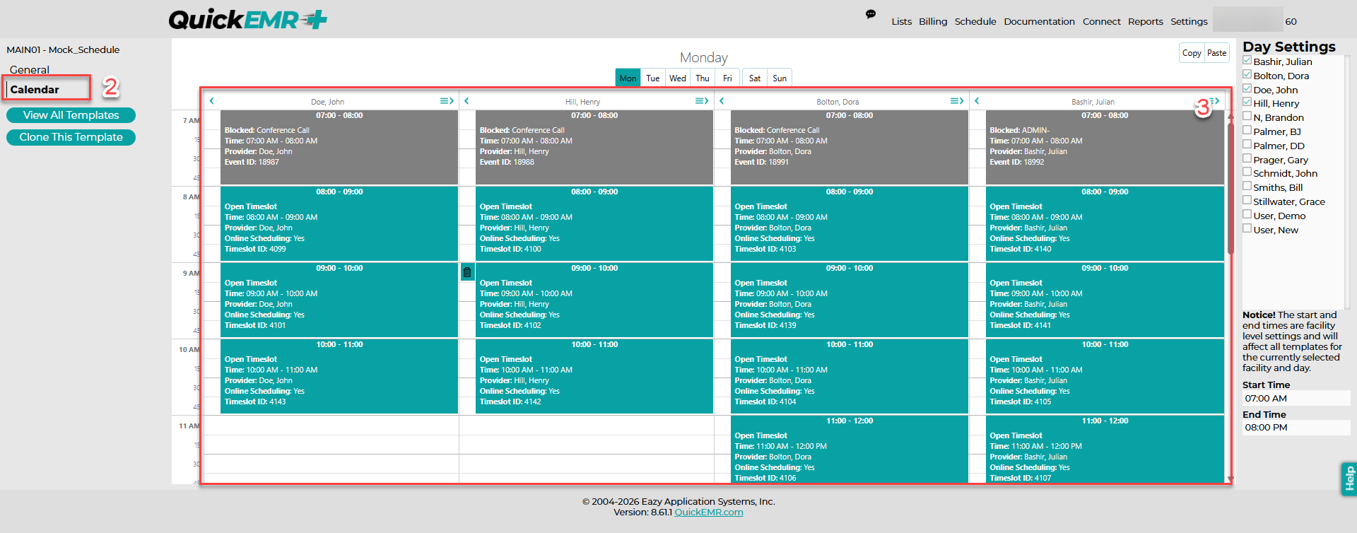 To start allowing patient to schedule online we need to create slots for them to book appointment 1. Users can do this by going to Schedule -> Templates
