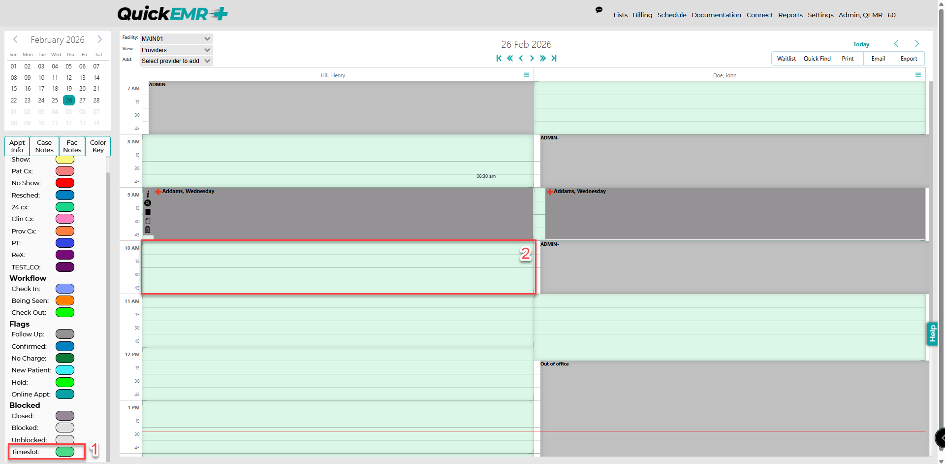 Step 4: Timeslots on the Appointment Book Calendar