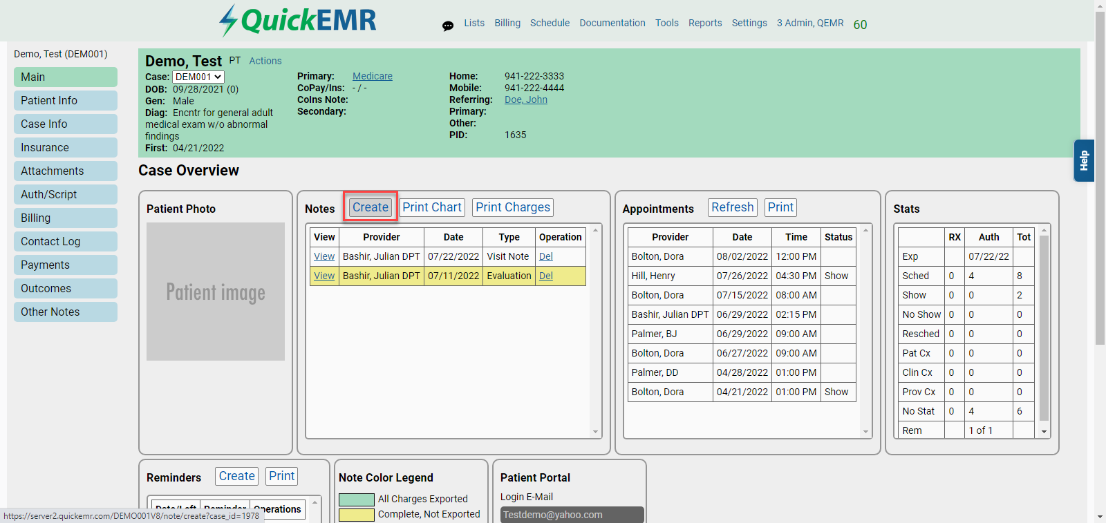 1. The therapist can create a note by going to the appointment book and clicking the "blank paper icon"