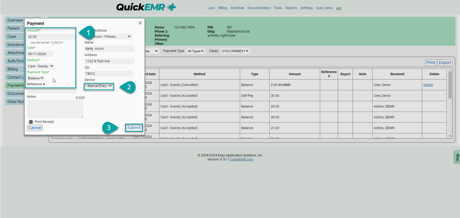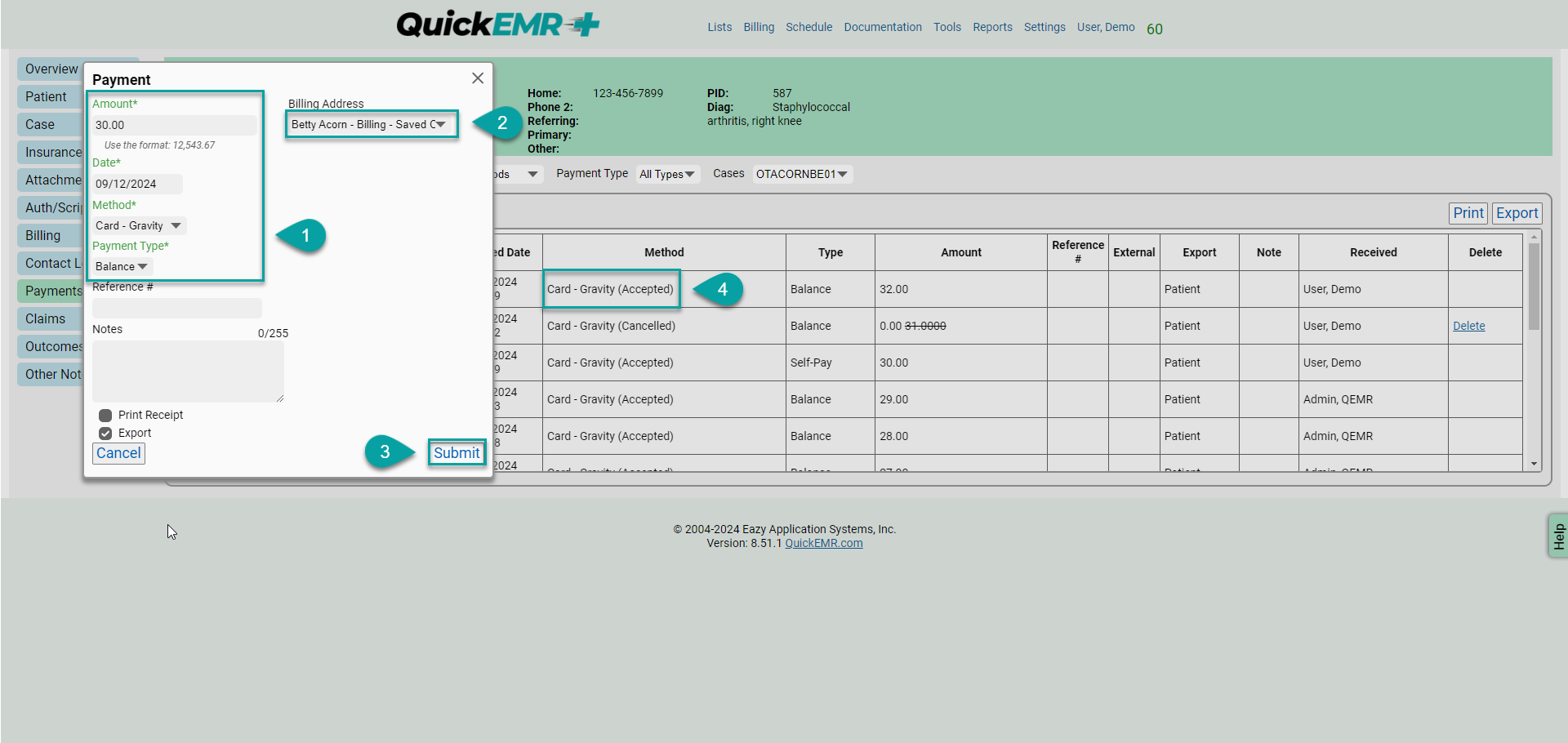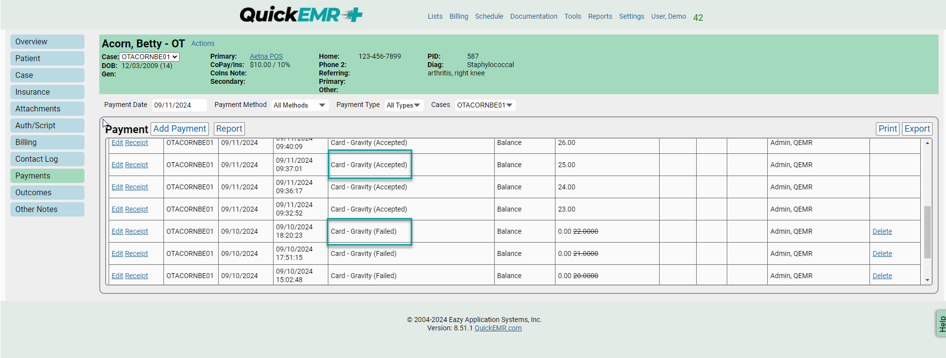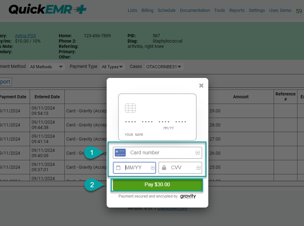 Now that you have Gravity Payments correctly set up within your system, you can now input a payment within the patient's case file.