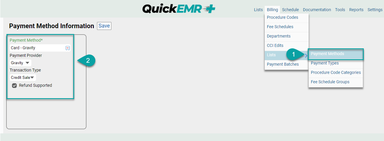 ***A payment device must be supplied from Gravity Payments for it to be compatible with the credit card processing system in QuickEMR.