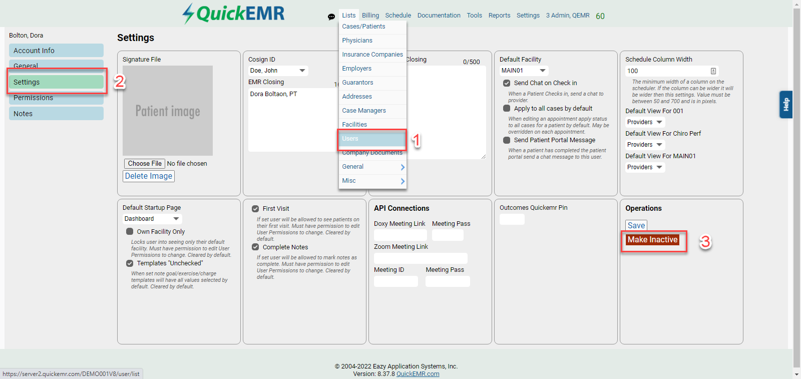 1. Now that the provider has been taken off the schedule the provider's account can be made inactive.