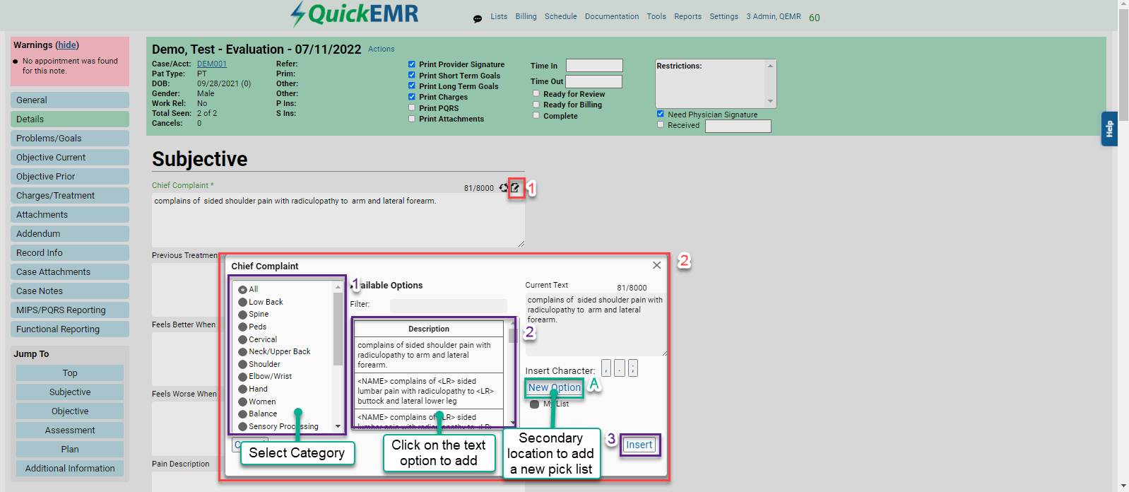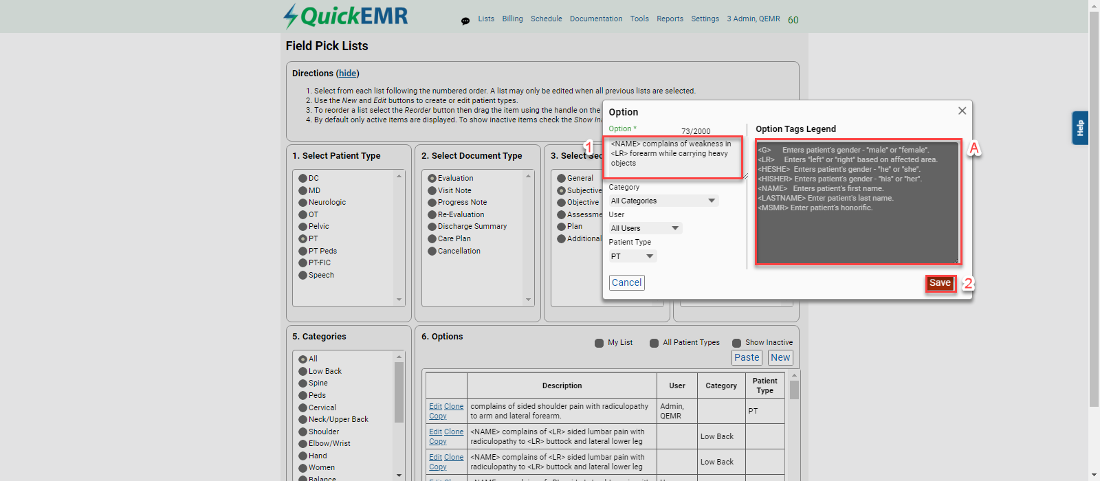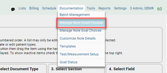 1. Users will be able to manage their picklist under Documentation-> Manage Note Detail Choices