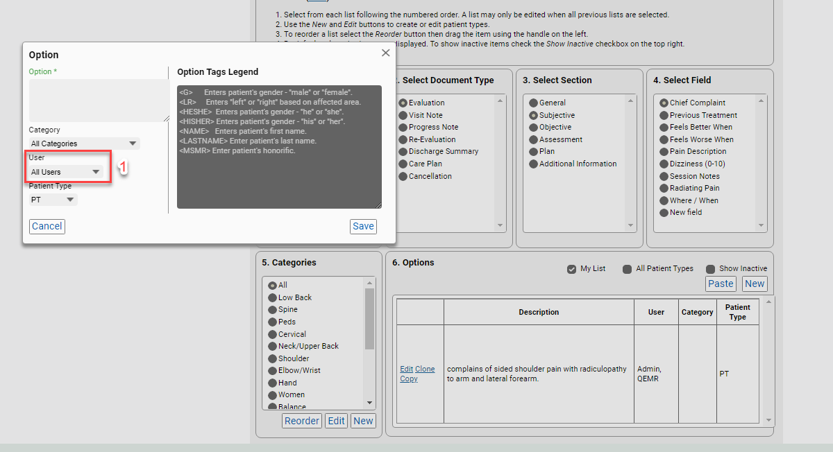 1. Assign a UserTherapist Notes: Accessing "My List" Picklist