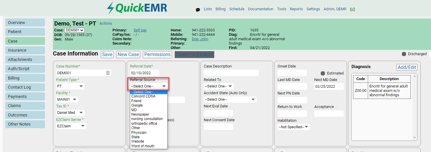 Patient's Chart: 1. In order for the referring physician to populate, you will first need to add the physician into the system. How to add a Regerring Physician? 1. Users may manage their referring physicians under List->Physicians. ...