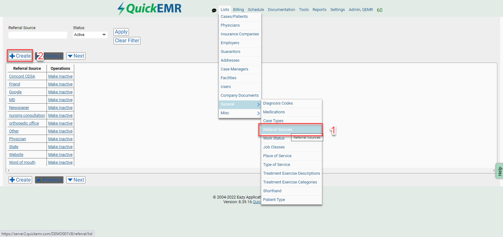 1. Users may manage their Referral Source under List->General->Referral Sources