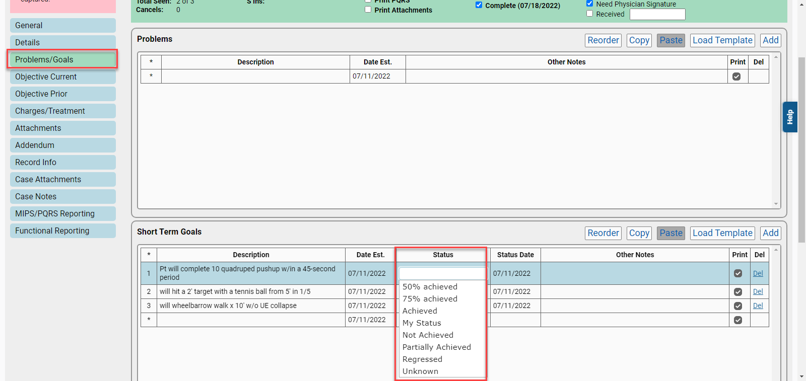 Therapist Notes: Accessing Goal Templates 1. Navigate to the Problems/Goals tab 2. Click Load Template under goals Template menu will display 1. Select Template 2.Select Entries (click the top check box to select/deselect all ...