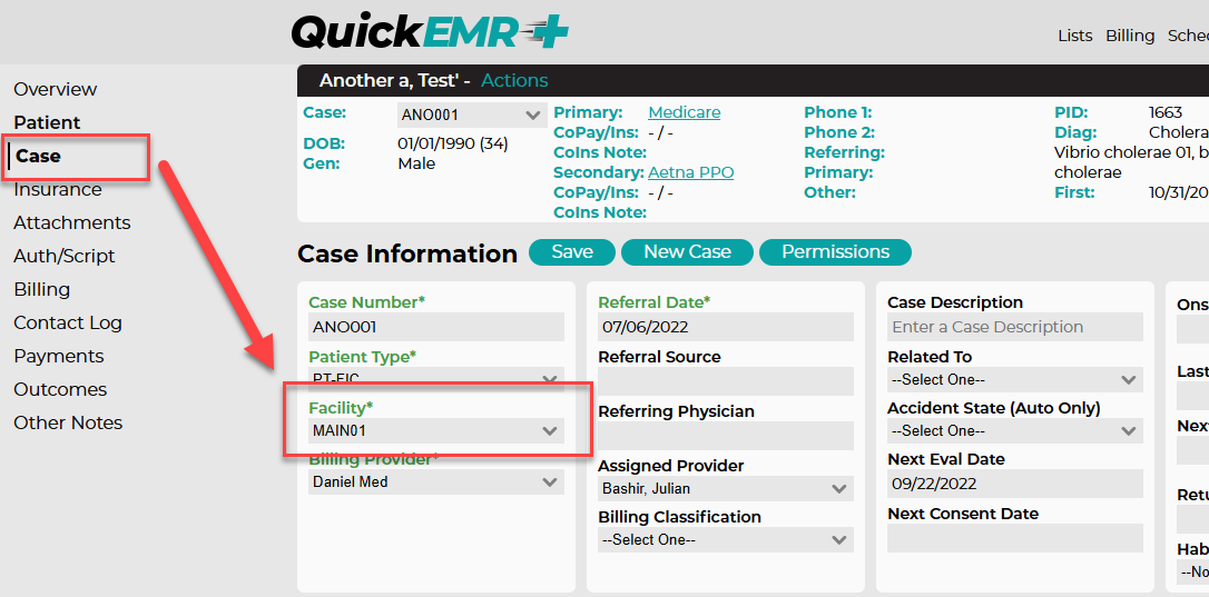 - Referring Physician - DFT message will contain the facility specified on the note. Otherwise the case facility is used.