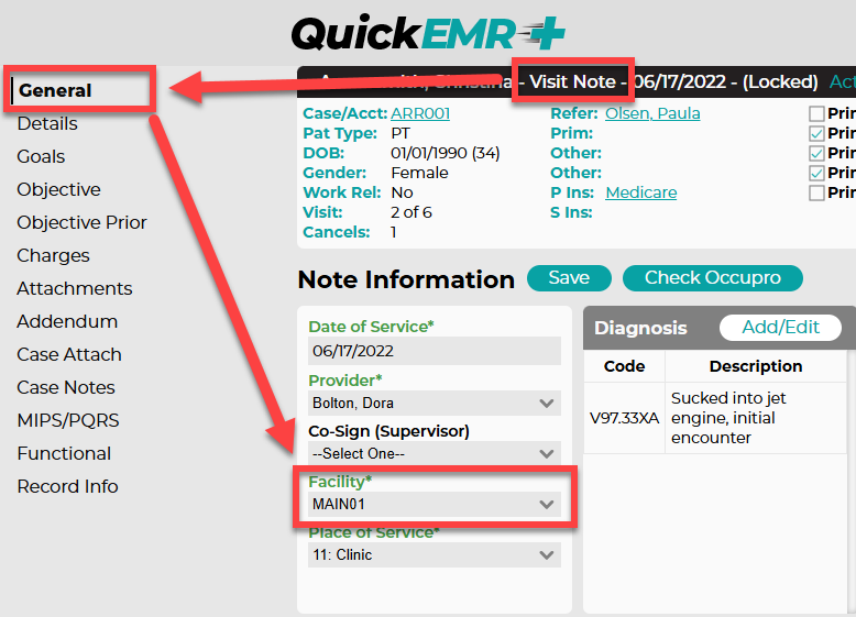 - Facility Description - The full name of the facility specified on the note. (See screenshot PV1.3)