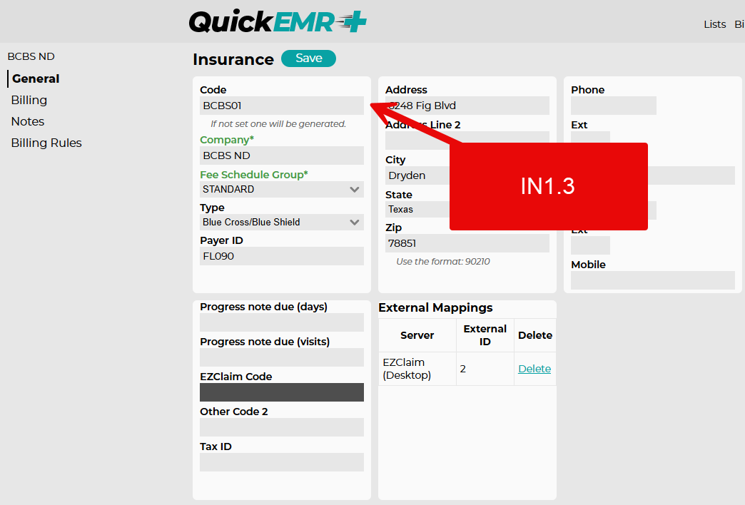 - Payer ID - Unique Code for this insurance. See Screenshot IN1.3