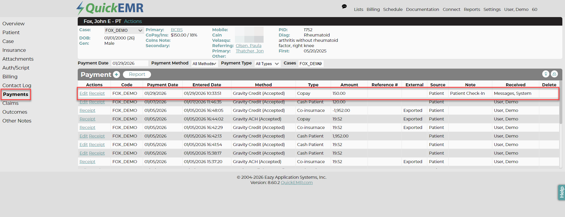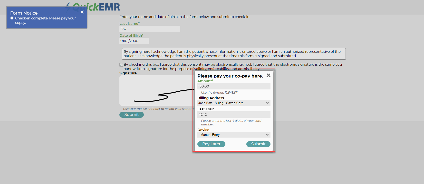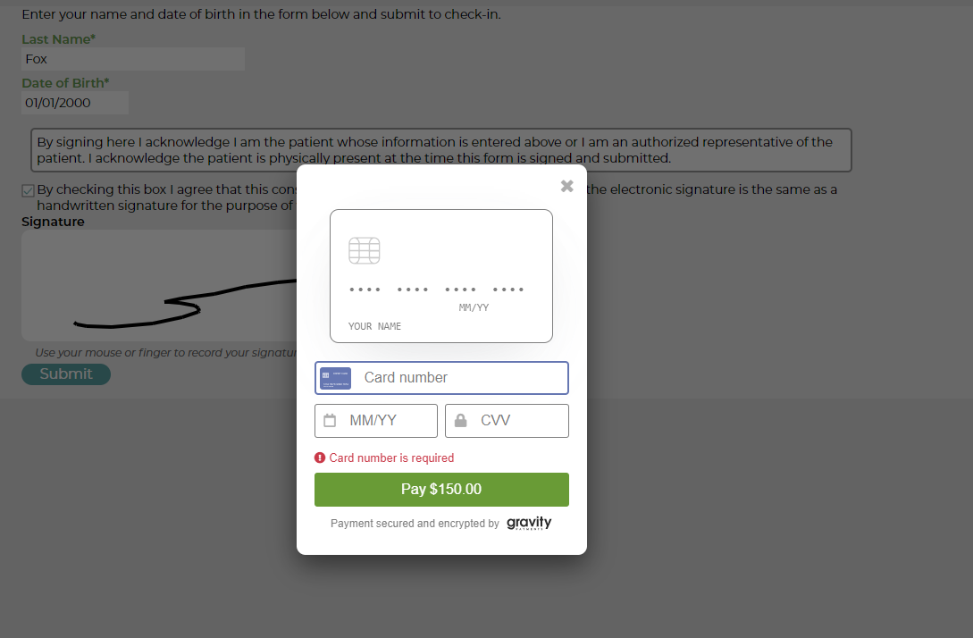 3. If you are using Gravity Payments, you can also opt to allow the patient to pay their CoPay upon check-in.