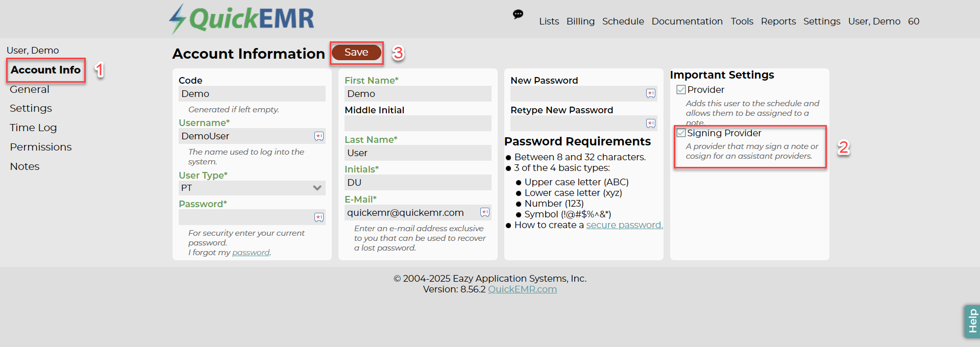 The user must also be designated as a "Signing Provider", which then allows the user to sign the completed note.