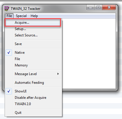 5. Click acquire to test your device, we recommend that you test both the feeder and glass top with multiple pages.