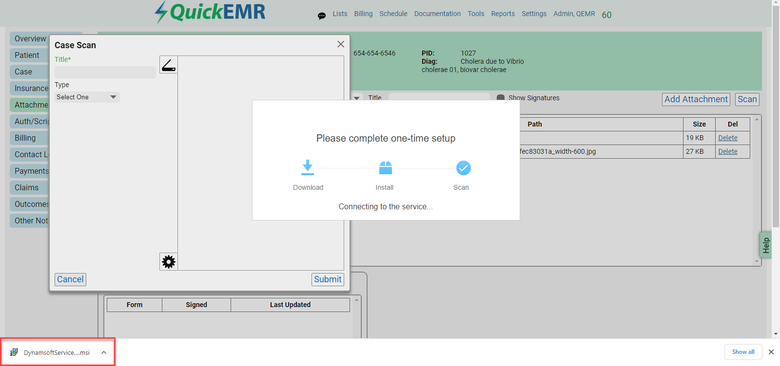 2. A one-time download of the DynamsoftService application will be required to use the scanning tool for your device