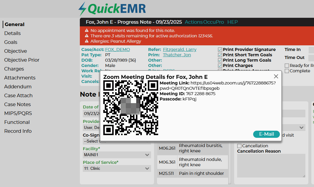 QuickEMR offers built-in telehealth integration with Zoom and Doxy, enabling your practice to connect with patients directly within the system. This means you can conduct telehealth visits without leaving the software.