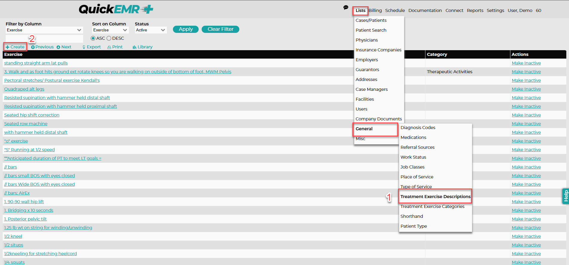 2. Once under Treatment Exercise Description, Click Create