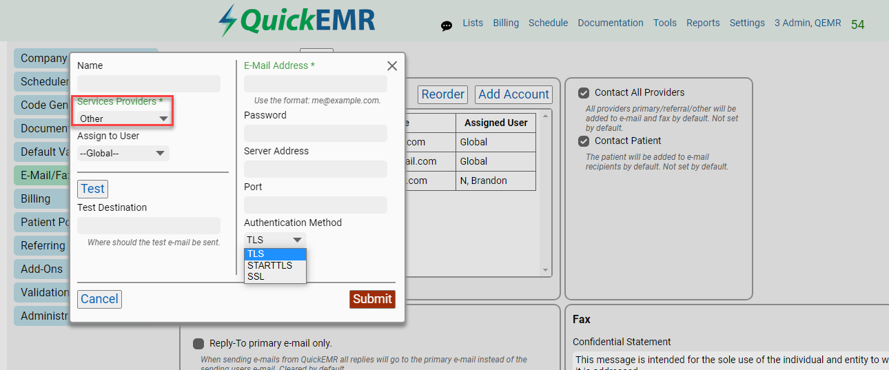 1. Will need to delete their existing account within QuickEMR under Settings->Email/Fax